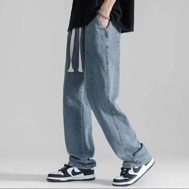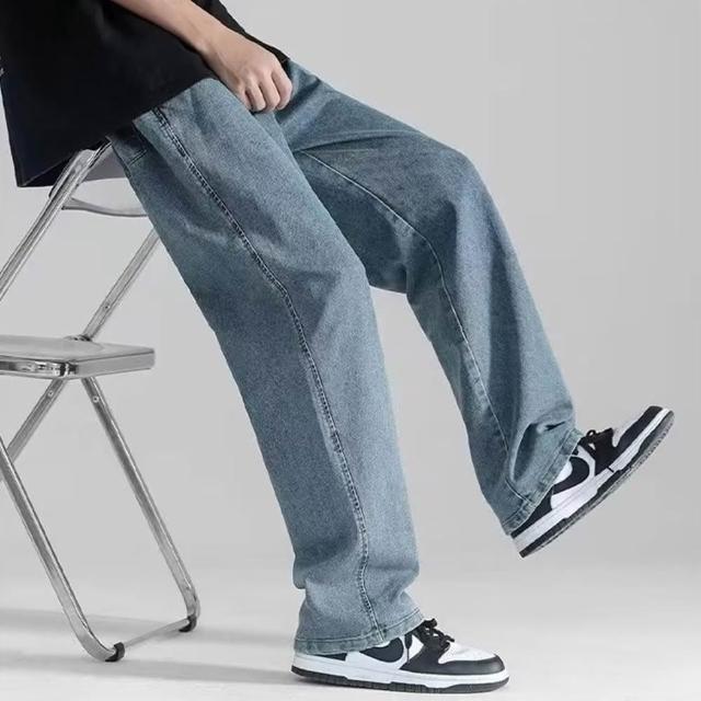 D.studio韓版寬鬆墜感直筒牛仔褲寬褲褲子長褲休閒褲男裝牛仔褲 拖地褲 直筒褲長褲男牛仔褲男 P244