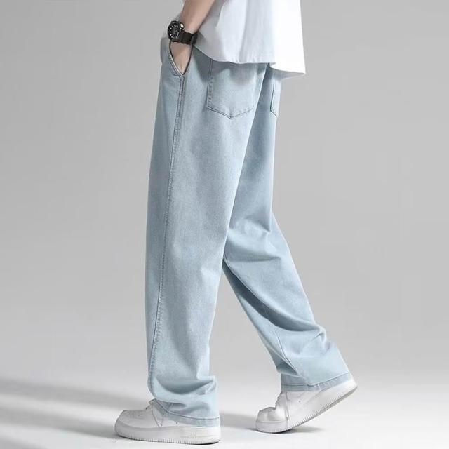 D.studio韓版寬鬆墜感直筒牛仔褲寬褲褲子長褲休閒褲男裝牛仔褲 拖地褲 直筒褲長褲男牛仔褲男 P244