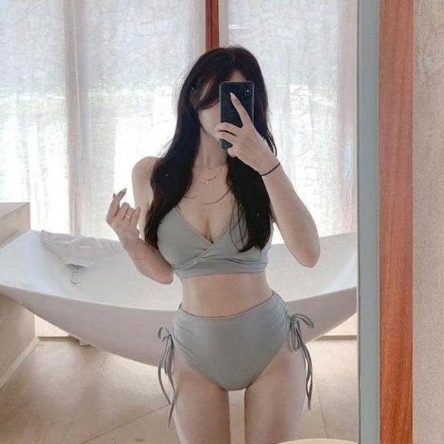 D.studio韓版高腰顯瘦兩件式泳衣比基尼 泳裝 背心泳衣 泳衣 套裝 上衣 女生泳衣 女裝 保守泳衣 S317