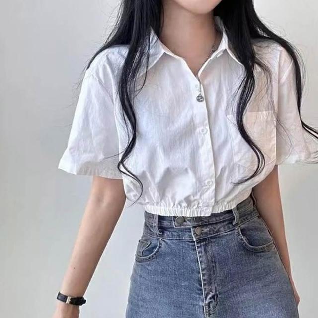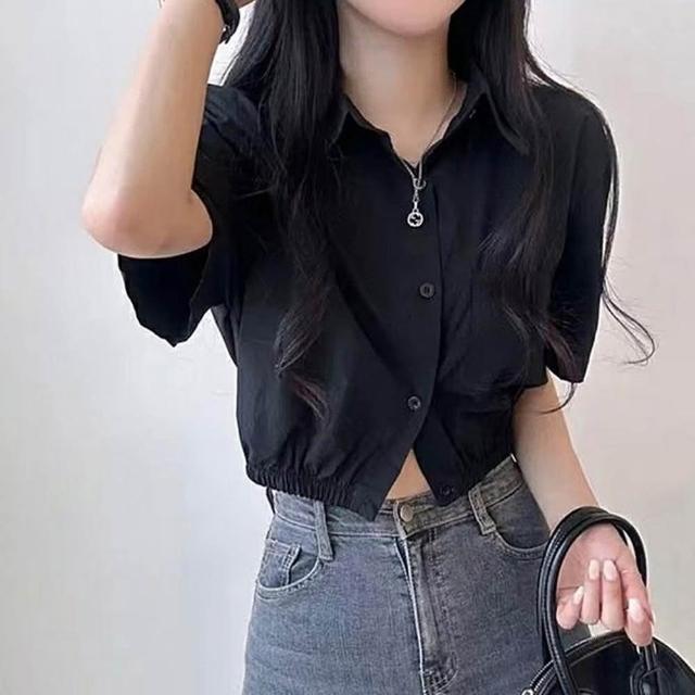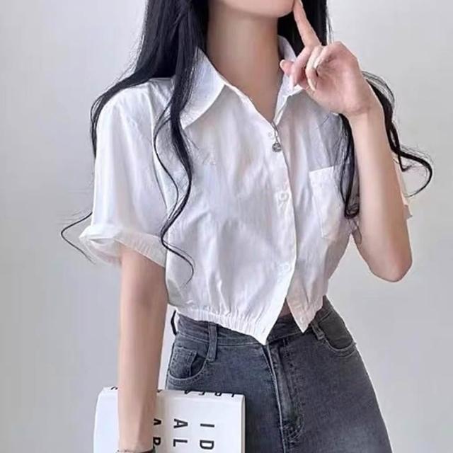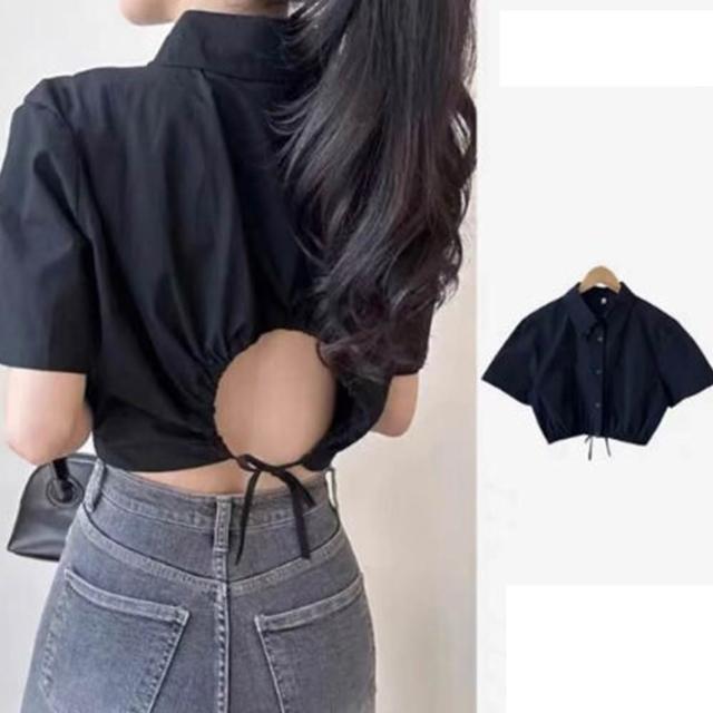 D.studio韓版鏤空露背收腰短版上衣 襯衫 短袖上衣 顯瘦上衣 衣服 夏天女裝 短板上衣 短版t恤 T608