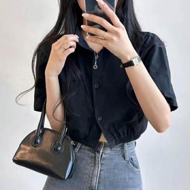 D.studio韓版鏤空露背收腰短版上衣 襯衫 短袖上衣 顯瘦上衣 衣服 夏天女裝 短板上衣 短版t恤 T608