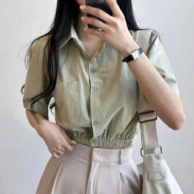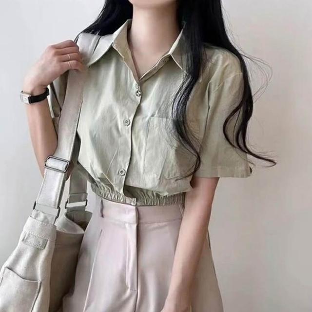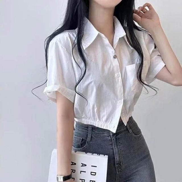 D.studio韓版鏤空露背收腰短版上衣 襯衫 短袖上衣 顯瘦上衣 衣服 夏天女裝 短板上衣 短版t恤 T608