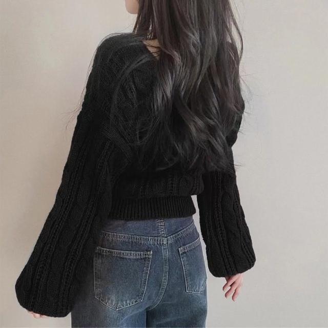 D.studio韓版方領氣質泡泡袖針織上衣 毛衣 長袖上衣 女裝 衣服 長袖t恤 保暖上衣 冬裝 發熱衣 W545