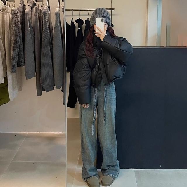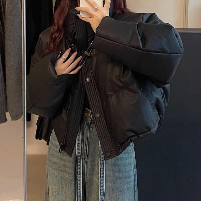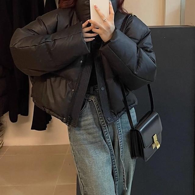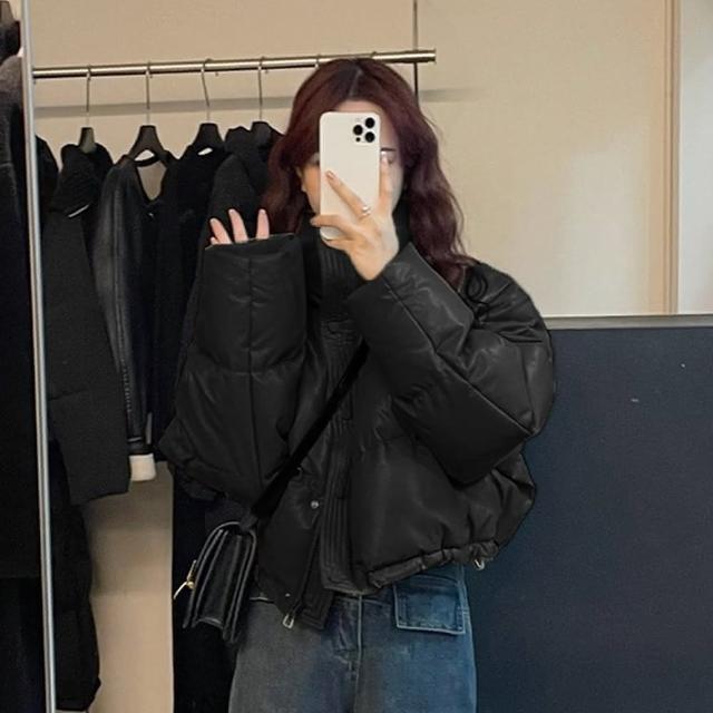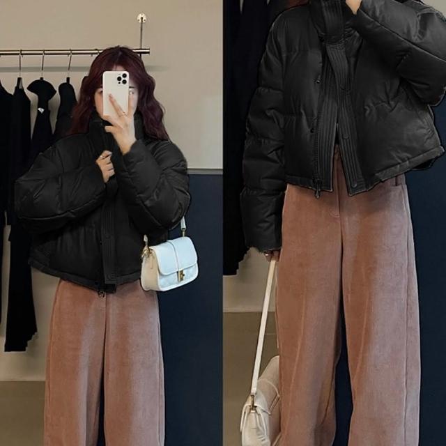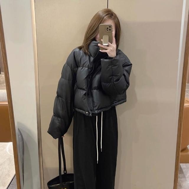 D.studio韓版高級感寬鬆立領皮外套 短版外套 保暖外套 皮外套 女裝 衣服 上衣 冬天外套 保暖上衣 J364