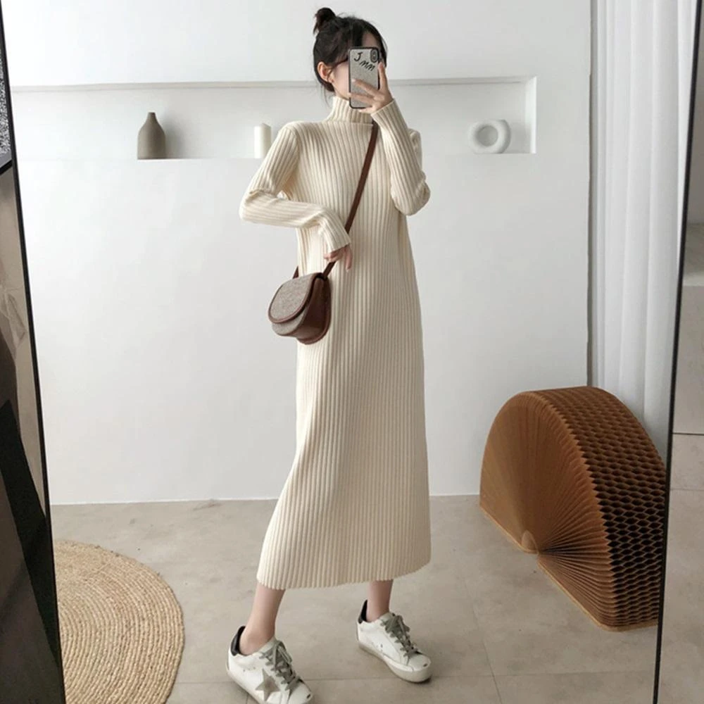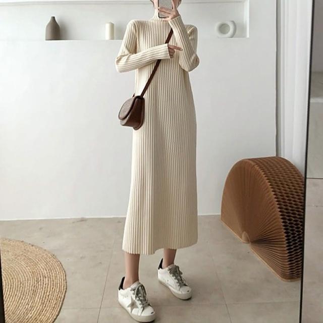 D.studio韓版直筒過膝長版洋裝 針織上衣 毛衣 長裙 長袖上衣 女裝 衣服 套裝 保暖上衣 冬天女裝 S339