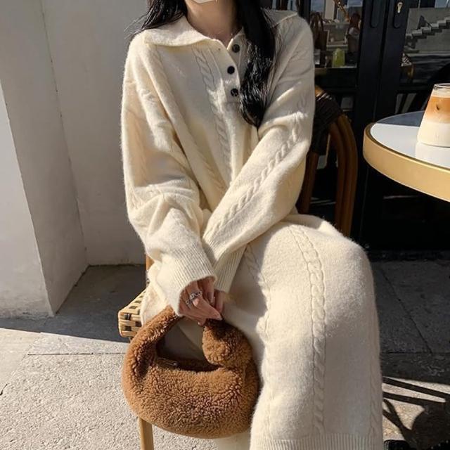 D.studio韓版氣質設計感麻花針織上衣 連衣裙 毛衣 長裙 套裝 洋裝 連身裙 冬天女裝 衣服 保暖上衣 S341