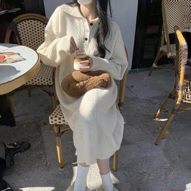 D.studio韓版氣質設計感麻花針織上衣 連衣裙 毛衣 長裙 套裝 洋裝 連身裙 冬天女裝 衣服 保暖上衣 S341