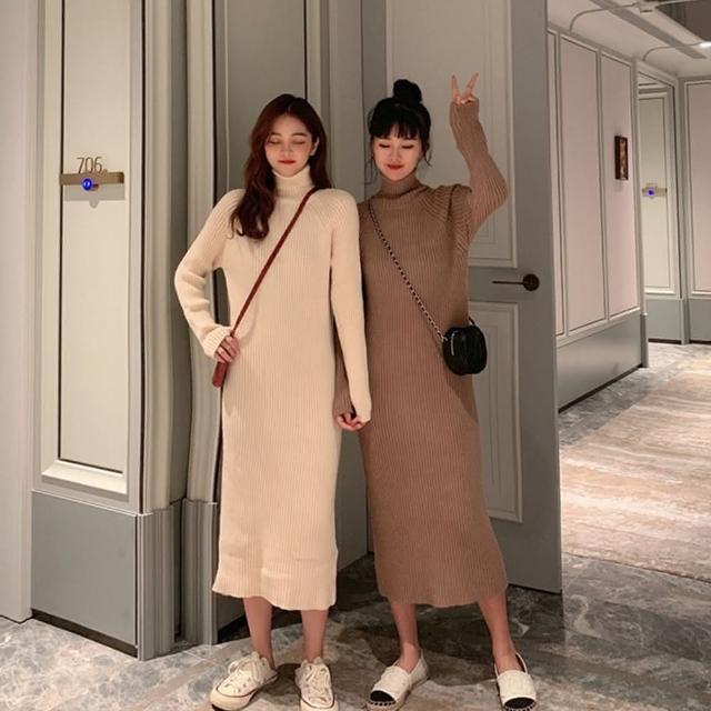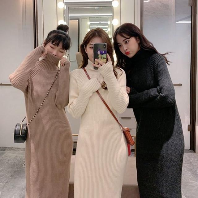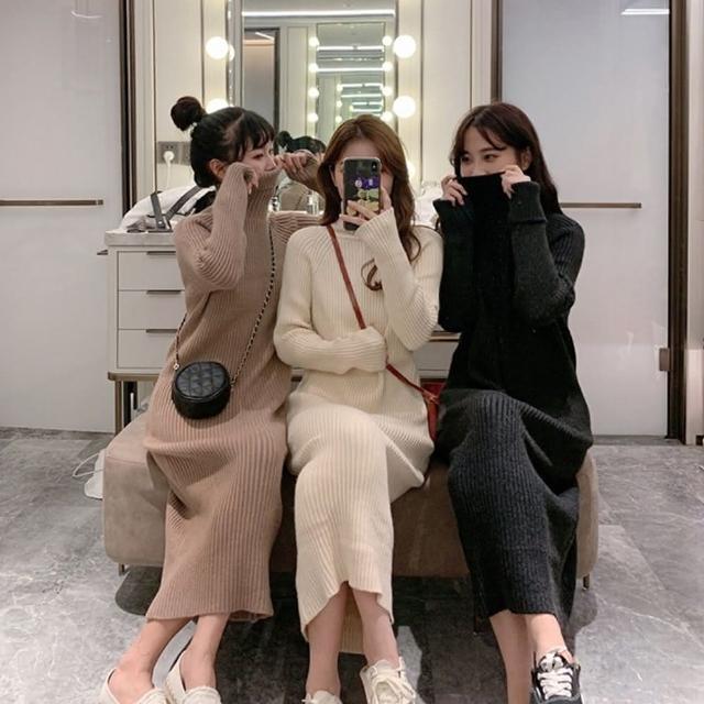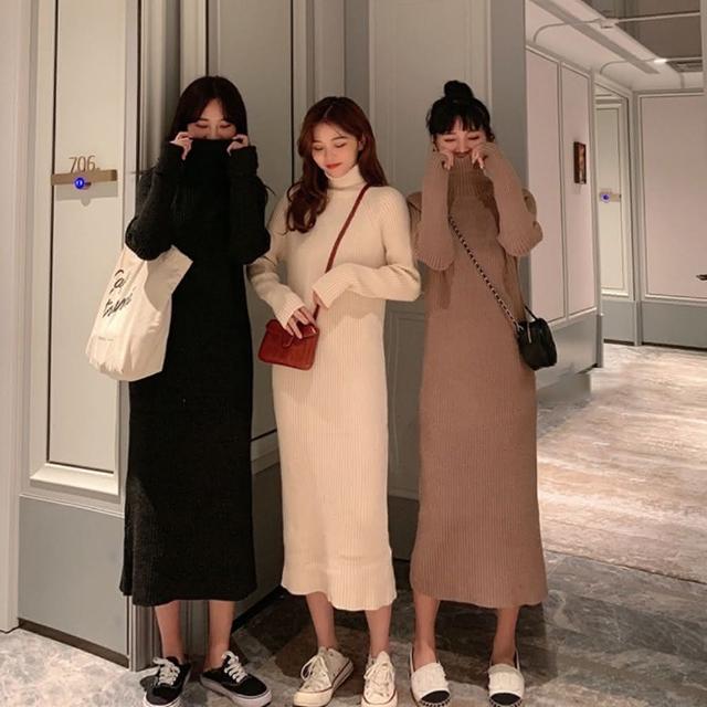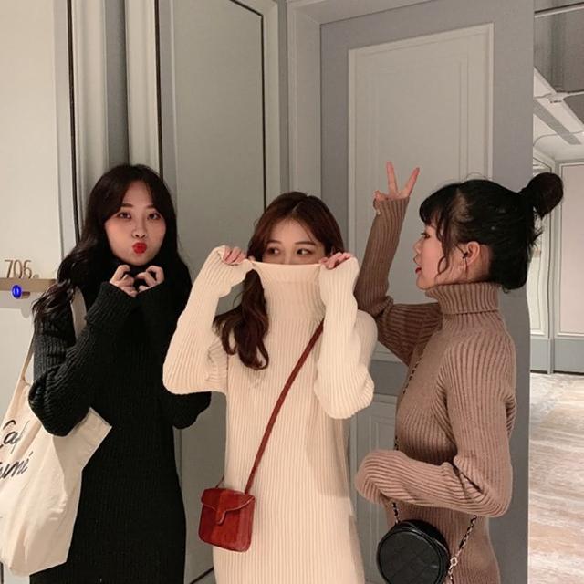 D.studio韓版氣質高領長版毛衣 長裙 針織上衣 毛衣 長袖上衣 女裝 衣服 洋裝 保暖上衣 冬天女裝 套裝 S339