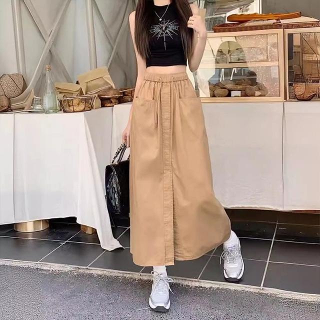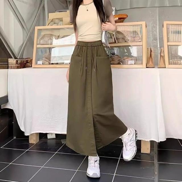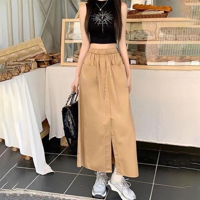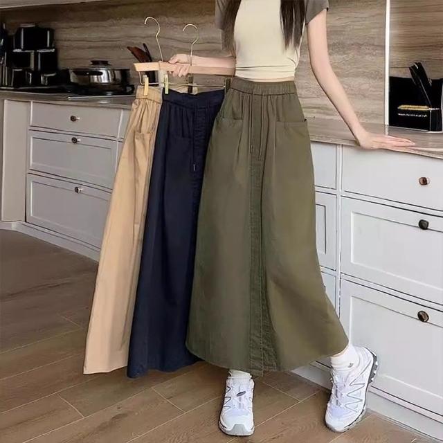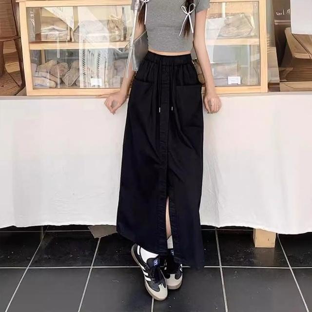 D.studio韓版寬鬆設計感開叉半身裙 工作褲 工裝褲 工裝裙 工作裙 長裙 裙子 女裝 衣服 長褲 褲子 P357