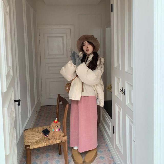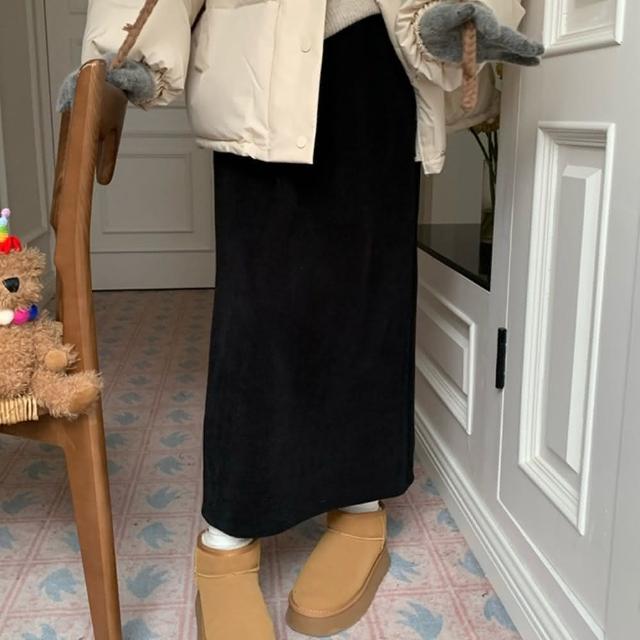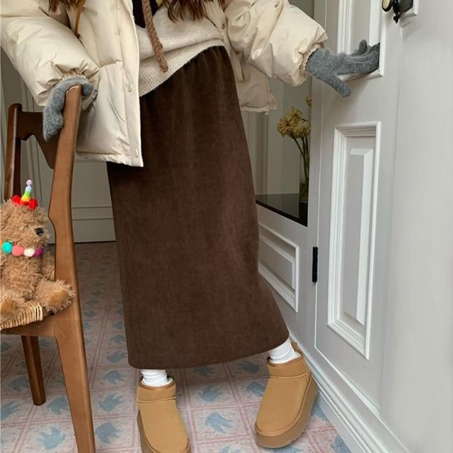 D.studio韓版復古高腰燈芯絨半身裙 長裙 褲子 裙子 冬天女裝 秋冬女裝 黑褲 發熱褲 保暖褲 長褲 P308