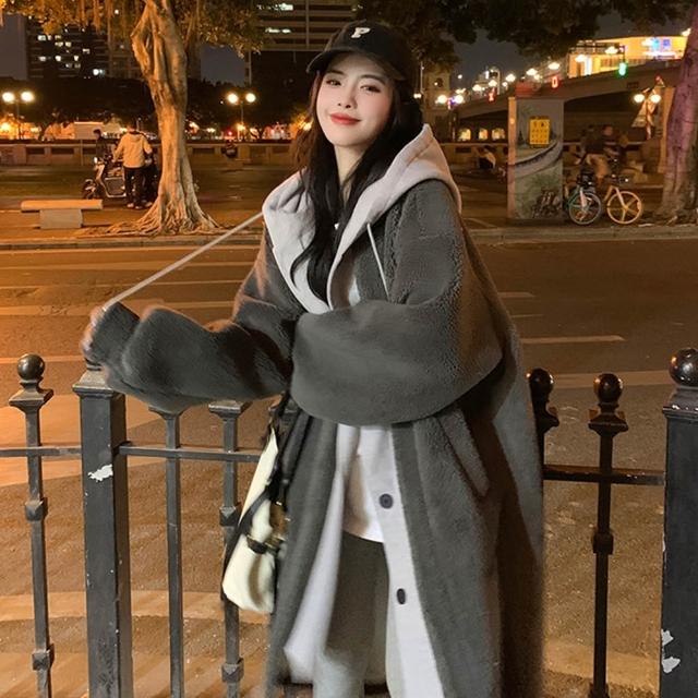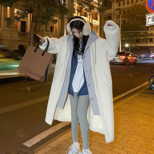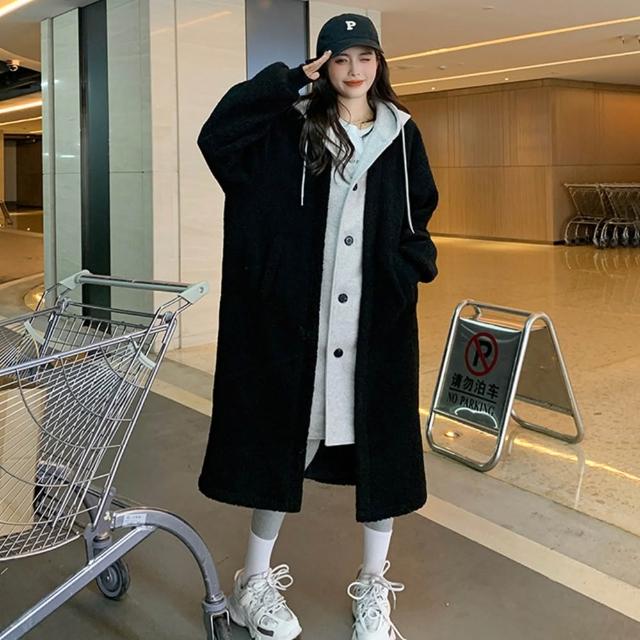 D.studio韓版連帽寬鬆外套 大衣 毛衣 長版外套 女裝 衣服 上衣 保暖外套 保暖上衣 連帽外套 冬天外套 J381