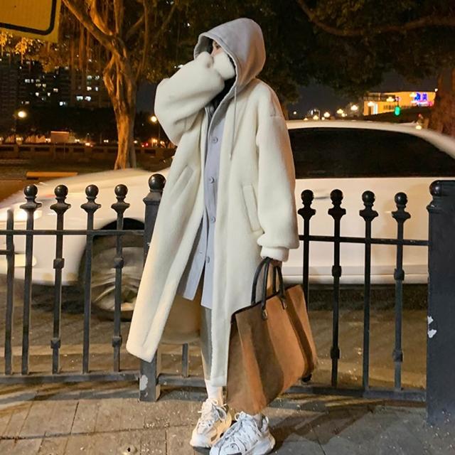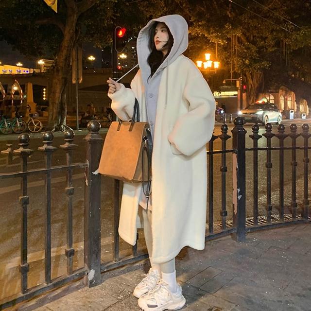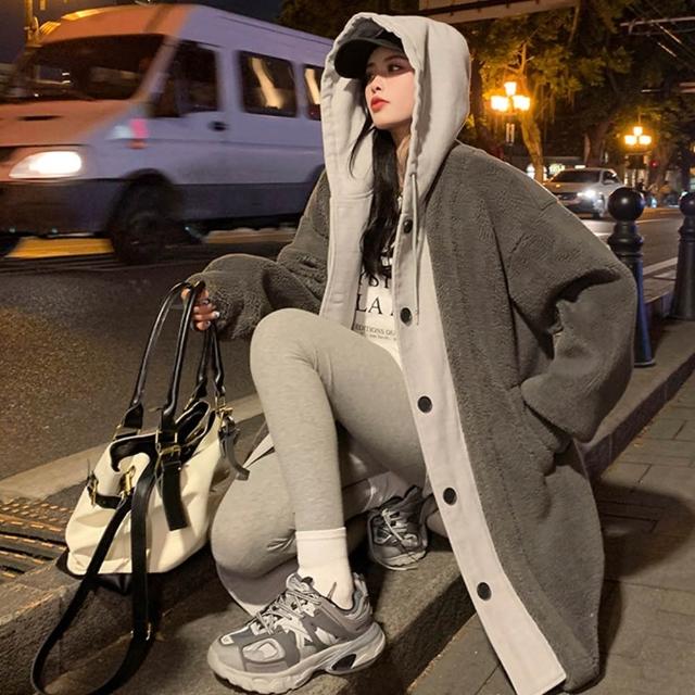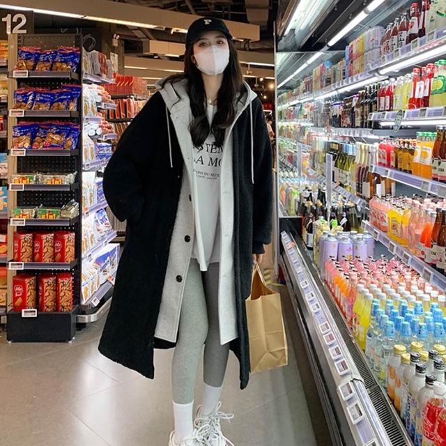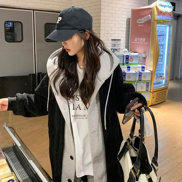 D.studio韓版連帽寬鬆外套 大衣 毛衣 長版外套 女裝 衣服 上衣 保暖外套 保暖上衣 連帽外套 冬天外套 J381