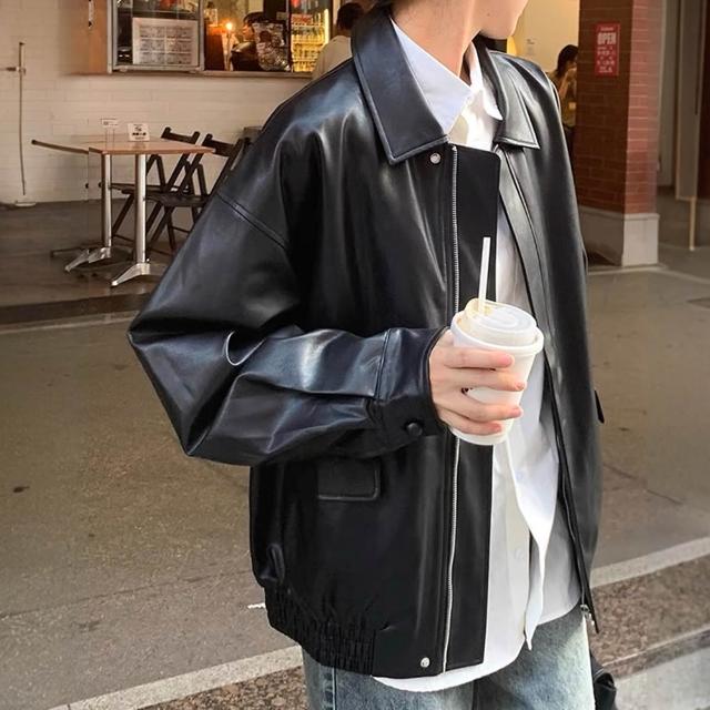 D.studio韓版寬鬆復古咖啡色皮衣 皮外套 夾克 機車外套 裝 衣服 上衣 保暖外套 保暖上衣 冬天外套 J382