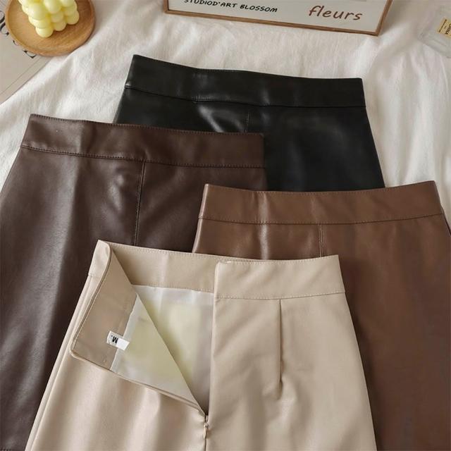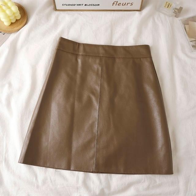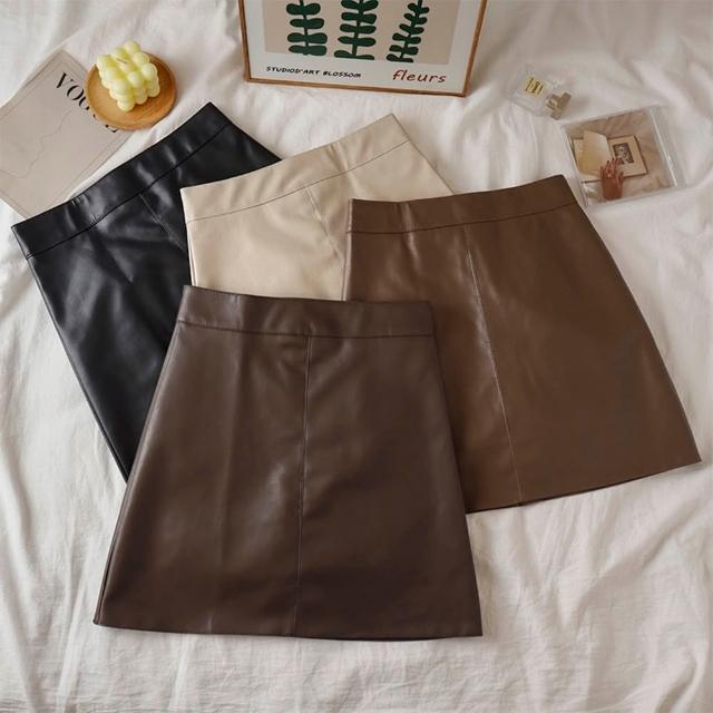 D.studio韓版高腰顯瘦防走光皮短裙 半身裙 短裙 A字裙 裙子 女裝 短褲 褲子 P214