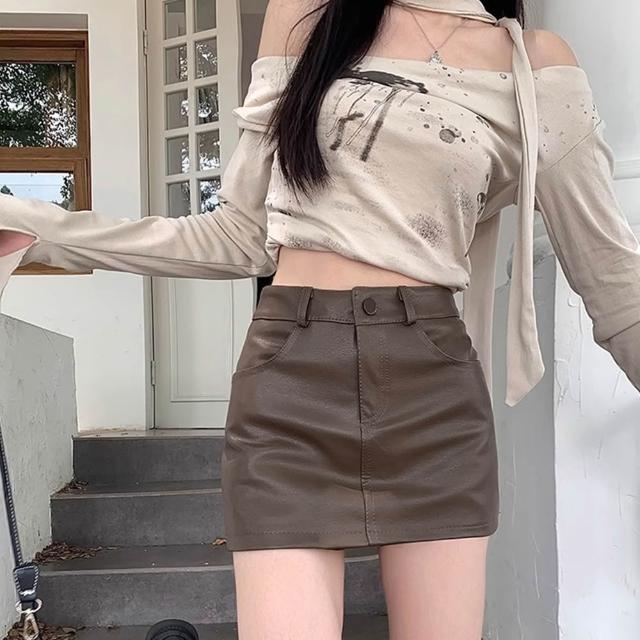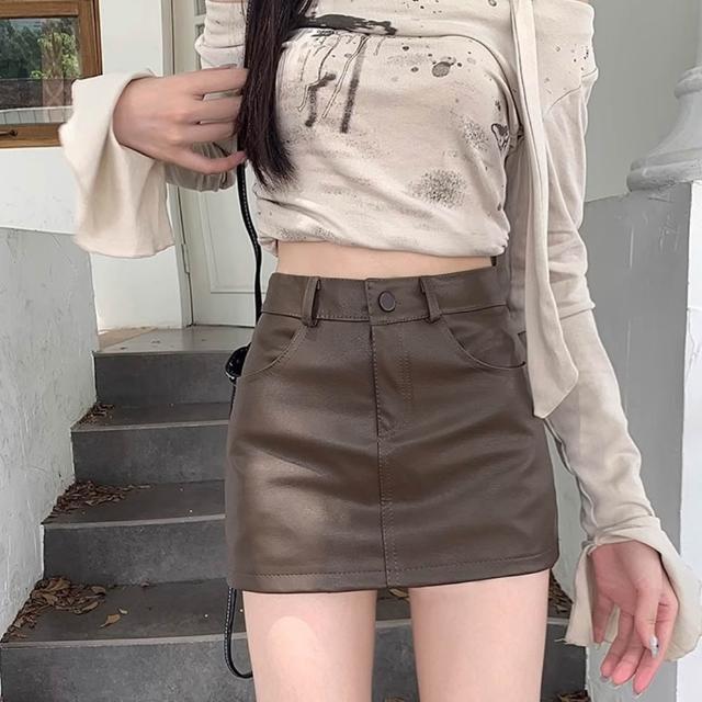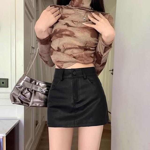 D.studio韓版高腰顯瘦包臀短裙 皮裙 半身裙 裙子 女裝 褲子 皮褲 短褲 短裙 裙裝 P362