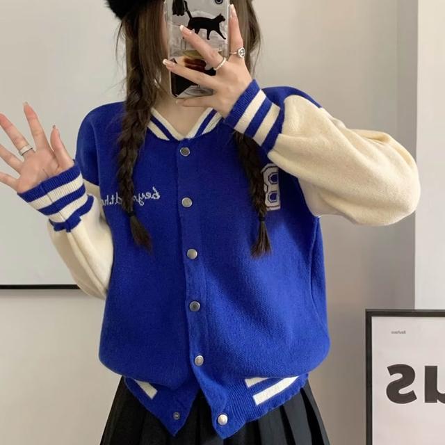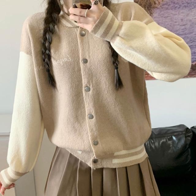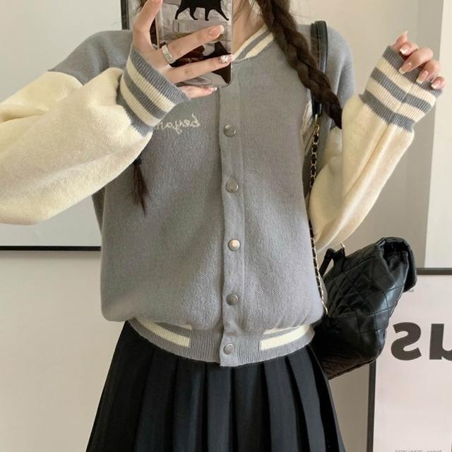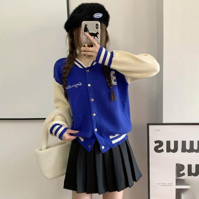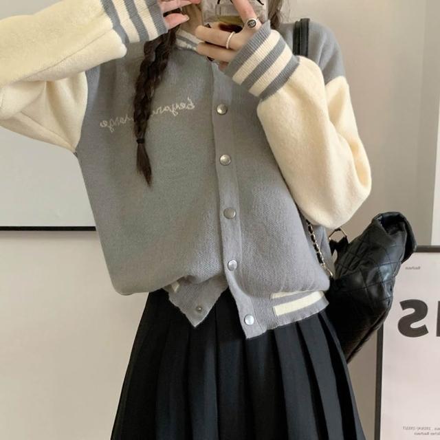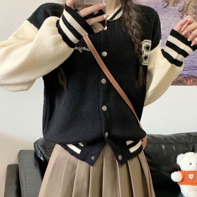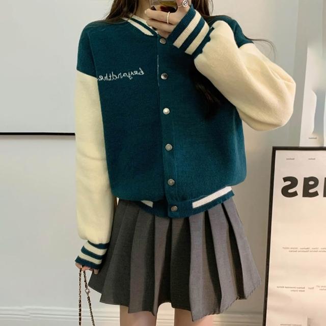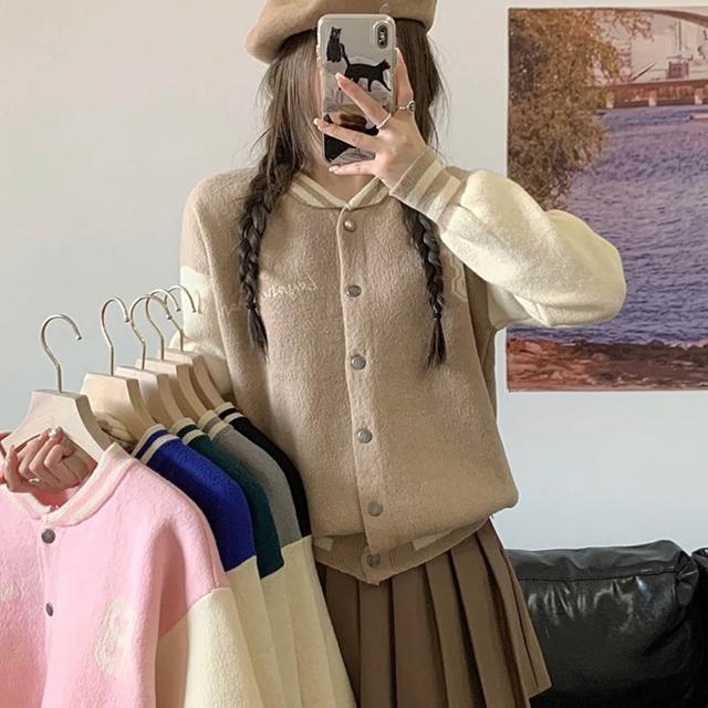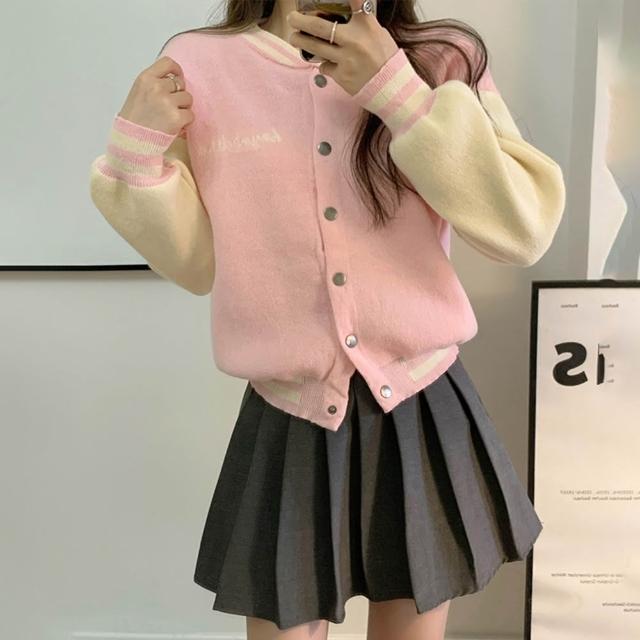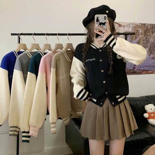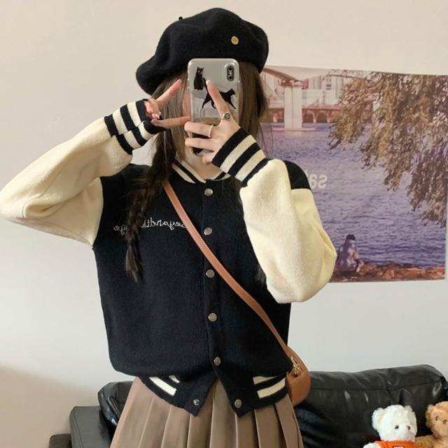 D.studio韓版寬鬆字母拼色休閒棒球外套 女裝 衣服 上衣 保暖外套 保暖上衣 長袖上衣 秋冬外套 J384