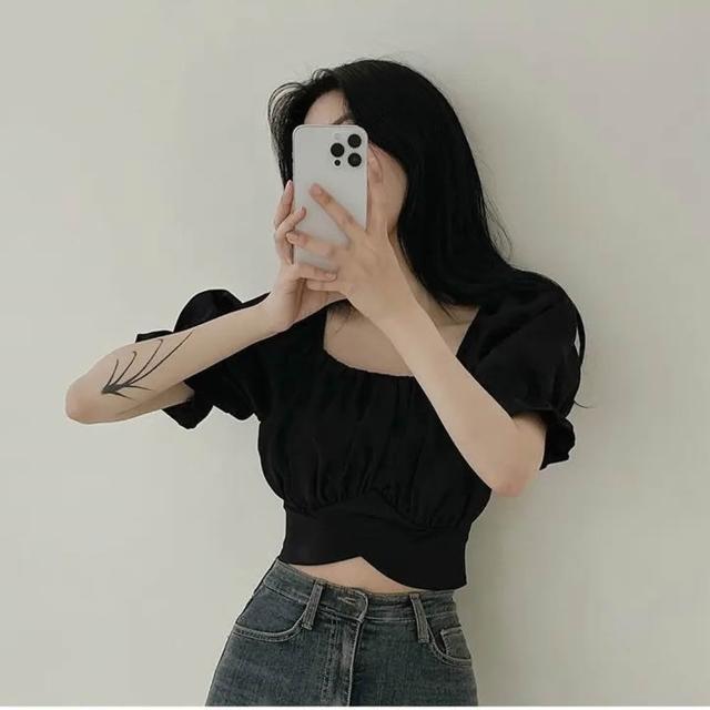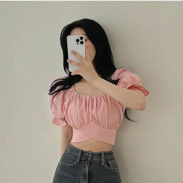 D.studio韓版交叉皺褶綁帶短版上衣 短袖上衣 顯瘦上衣 衣服 夏天女裝 短板上衣 短版t恤 女裝 T615