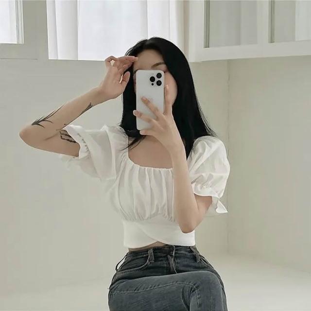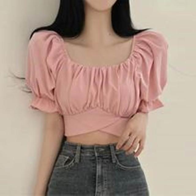 D.studio韓版交叉皺褶綁帶短版上衣 短袖上衣 顯瘦上衣 衣服 夏天女裝 短板上衣 短版t恤 女裝 T615