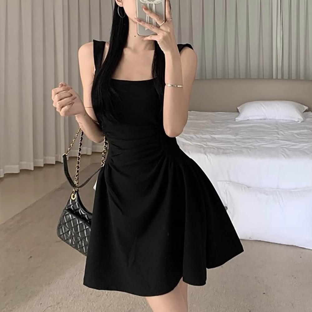 D.studio韓版氣質收腰顯瘦小黑裙洋裝 背心 長裙 套裝 禮服 女裝 衣服 夏天女裝 裙子 短裙 洋裝 S353