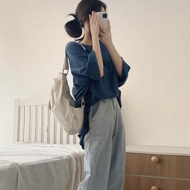 D.studio韓版寬鬆設計感五分袖上衣 oversize 短袖上衣 衣服 夏天女裝 女裝 短袖t恤女 長版上衣 T636