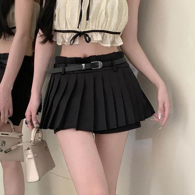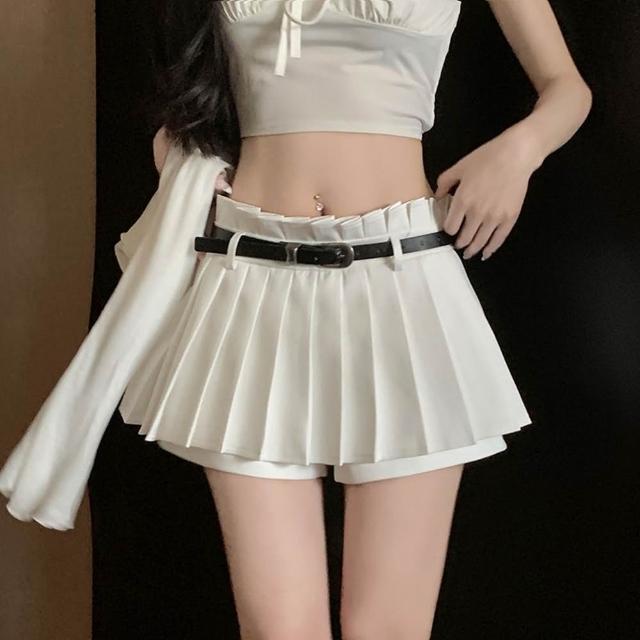 D.studio韓版高腰短褲裙 內有安全褲 附皮帶 百褶裙 半身裙 褲褲 短裙 短褲 褲子 女裝 裙子【P374】