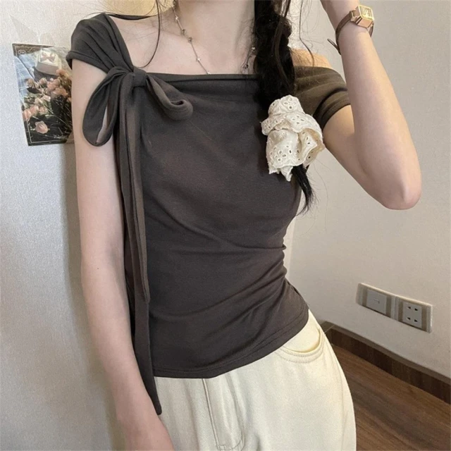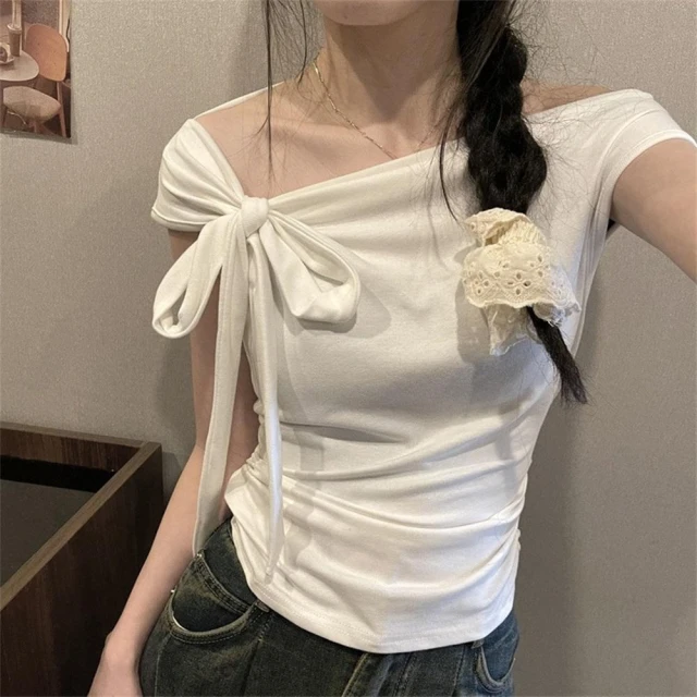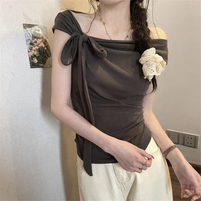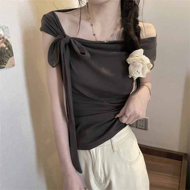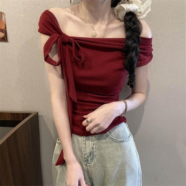 D.studio韓版氣質一字領露肩上衣 斜肩上衣 短袖上衣 顯瘦上衣 衣服 夏天女裝 女裝 短袖t恤女【T651】