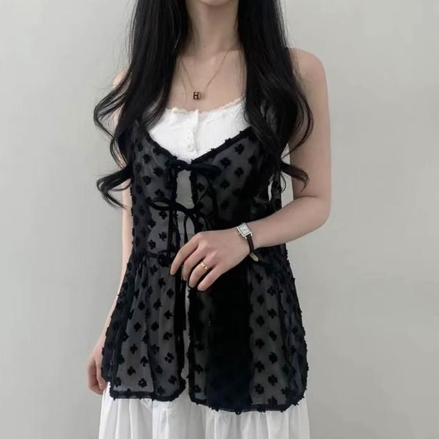 D.studio韓版疊穿花花小紗裙吊帶網紗背心 小可愛 女裝 衣服 短版上衣 小背心 夏天女裝 洋裝【V391】