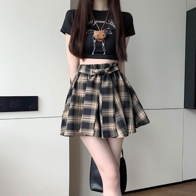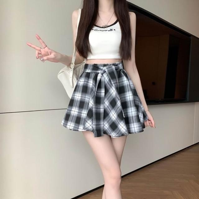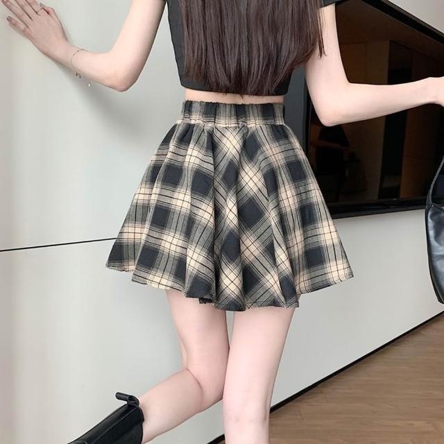 D.studio韓版高腰不規則復古格紋半身裙女 短裙 裙子 褲裙 褲子 短褲 【P379】