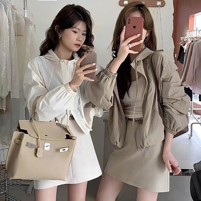 D.studio韓版薄款高級感薄外套 薄外套 連帽外套 風衣 防曬外套 女裝 衣服 長袖上衣 短版上衣 短版外套【J388】