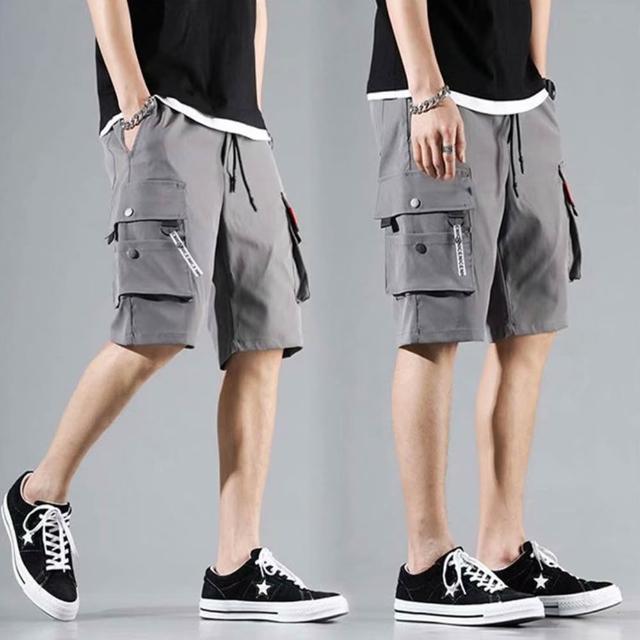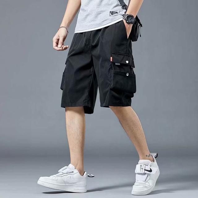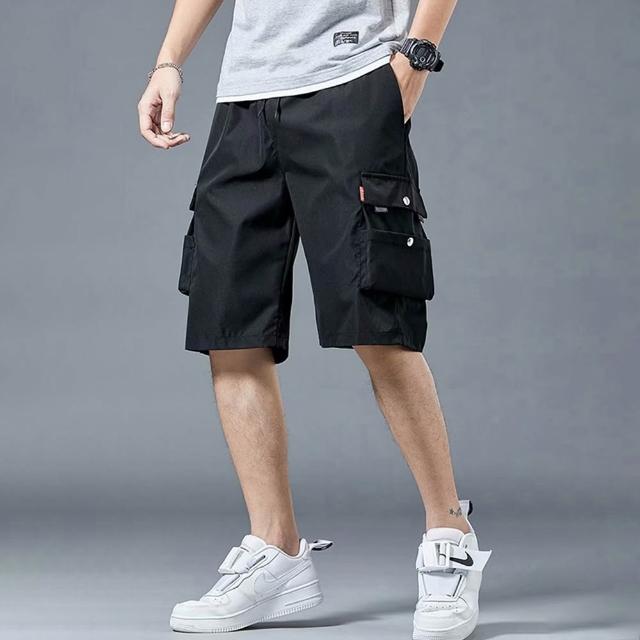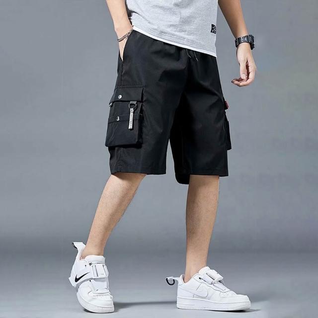 D.studio韓版寬鬆多口袋工裝休閒短褲 工作短褲 五分褲 工作褲 短褲男 褲子男 男裝 休閒短褲 黑褲【P253】