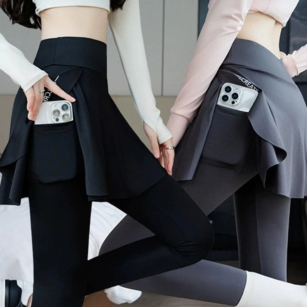 D.studio韓版高腰假兩件褲裙 緊身褲 鯊魚褲 瑜珈褲 內搭褲 長褲 褲子 女裝 裙子 運動褲【P400】