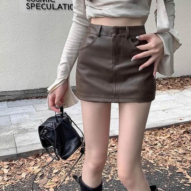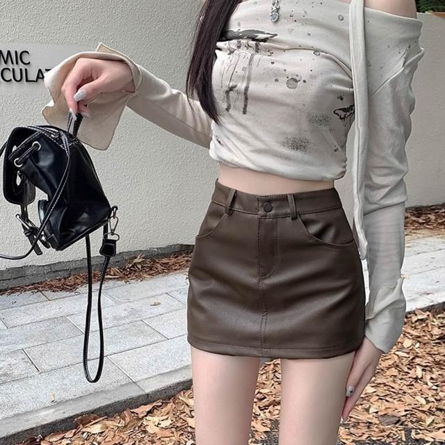 D.studio韓版高腰顯瘦包臀皮裙 短裙 皮裙 A字裙 裙子 短褲 褲子 冬天女裝 秋天女裝 皮褲 褲裙【P362】