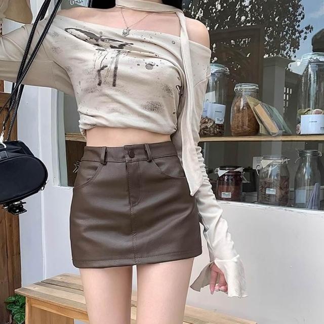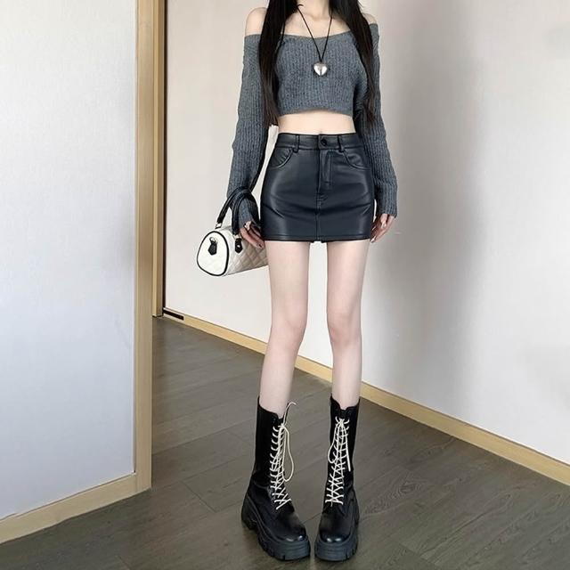 D.studio韓版高腰顯瘦包臀皮裙 短裙 皮裙 A字裙 裙子 短褲 褲子 冬天女裝 秋天女裝 皮褲 褲裙【P362】