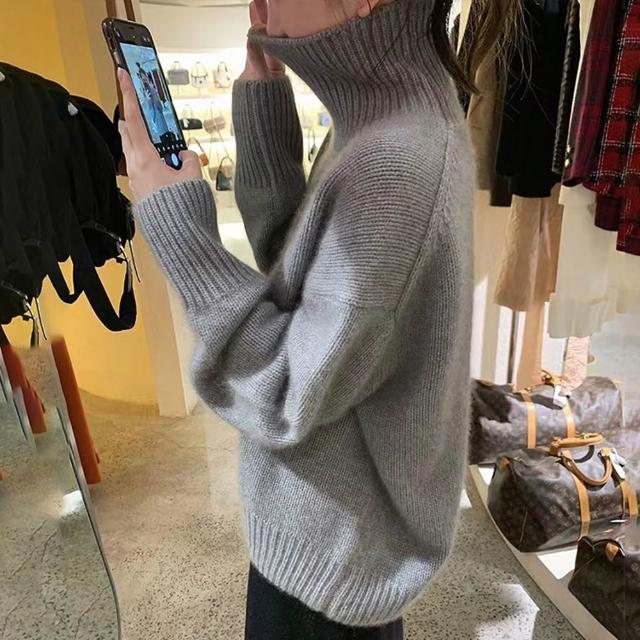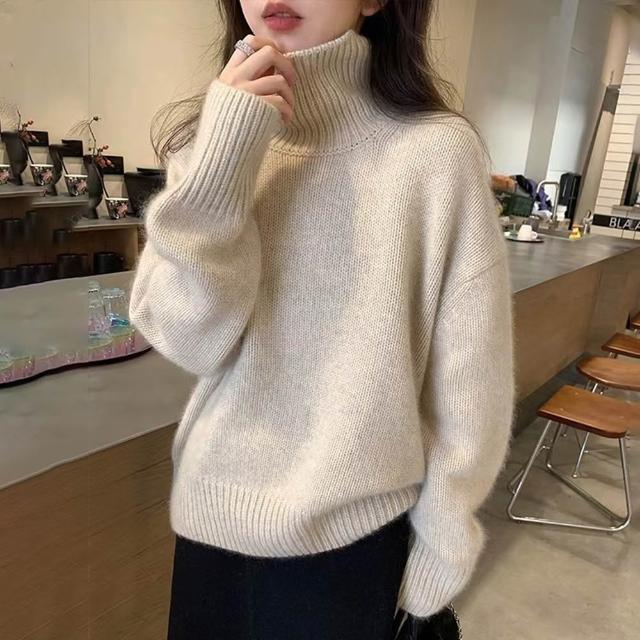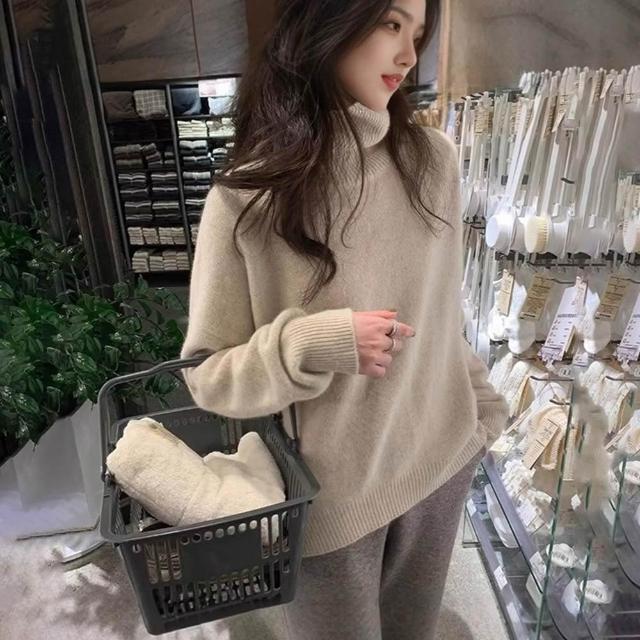 D.studio韓版簡約高領寬鬆毛衣 針織上衣 長袖上衣 衣服 保暖上衣 冬天女裝 秋冬女裝 發熱衣 高領內搭【W607】