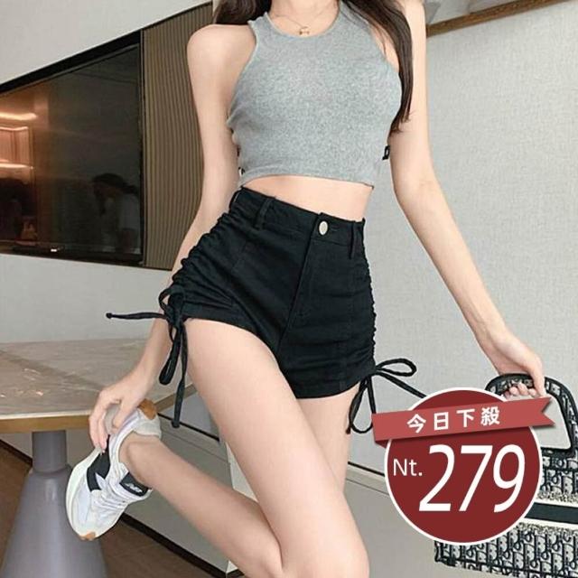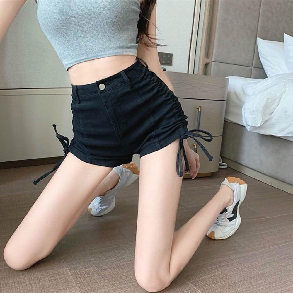 D.studio台灣發貨韓版高腰顯瘦彈性拉繩牛仔短褲 短褲 褲子 女裝P186