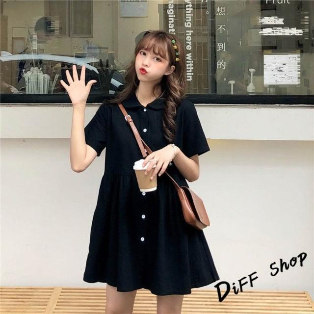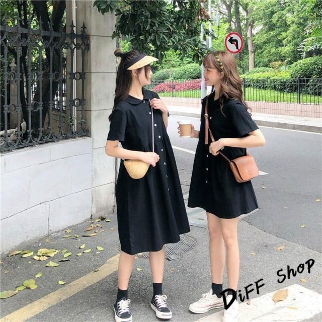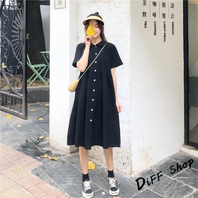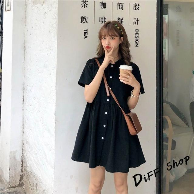 D.studio台灣發貨韓版翻領設計感法式短袖連衣裙 裙子 褲裙 長裙 女裝T313