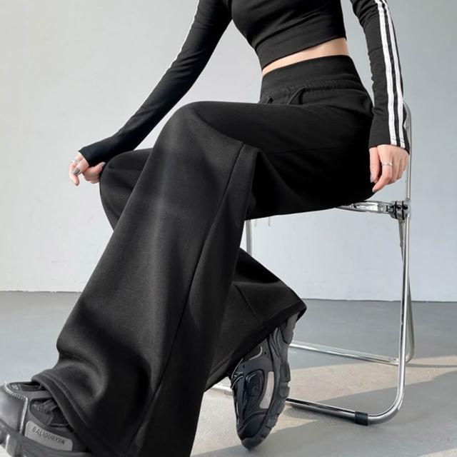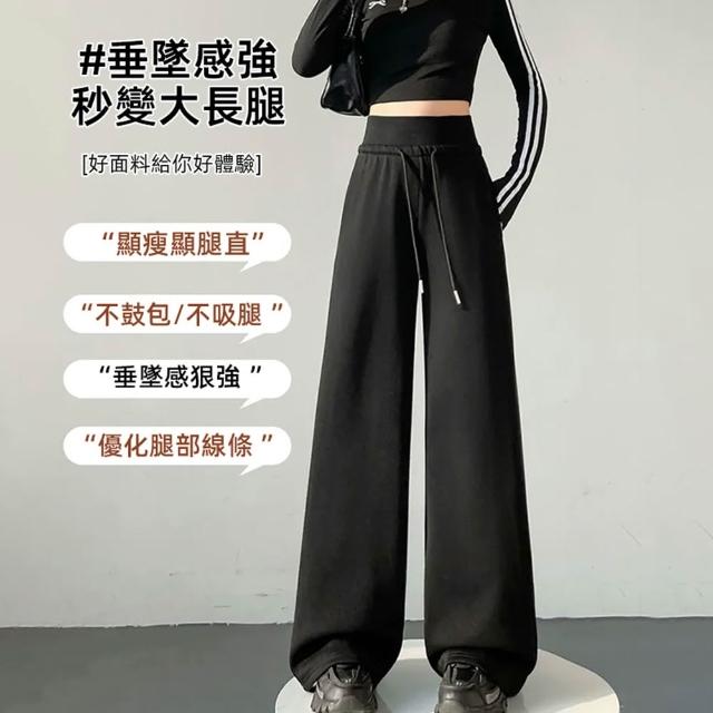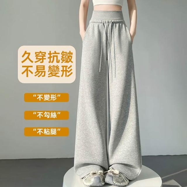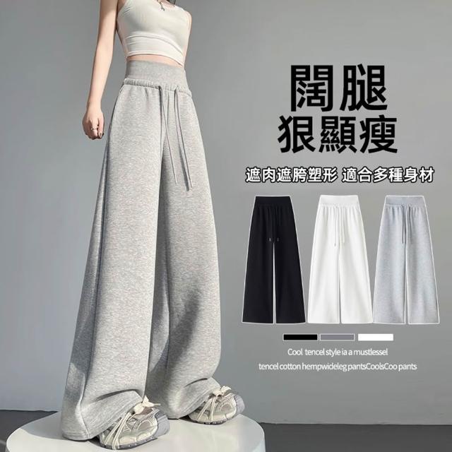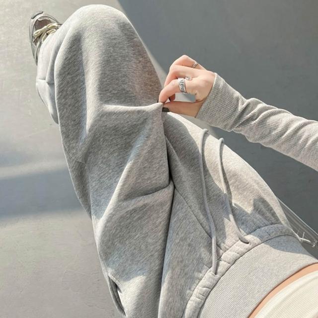 D.studio韓版高腰顯瘦灰色運動寬褲 寬褲 褲子 長褲 休閒褲 高腰褲 直筒褲 黑褲 拖地褲 喇叭褲 運動褲【P410】