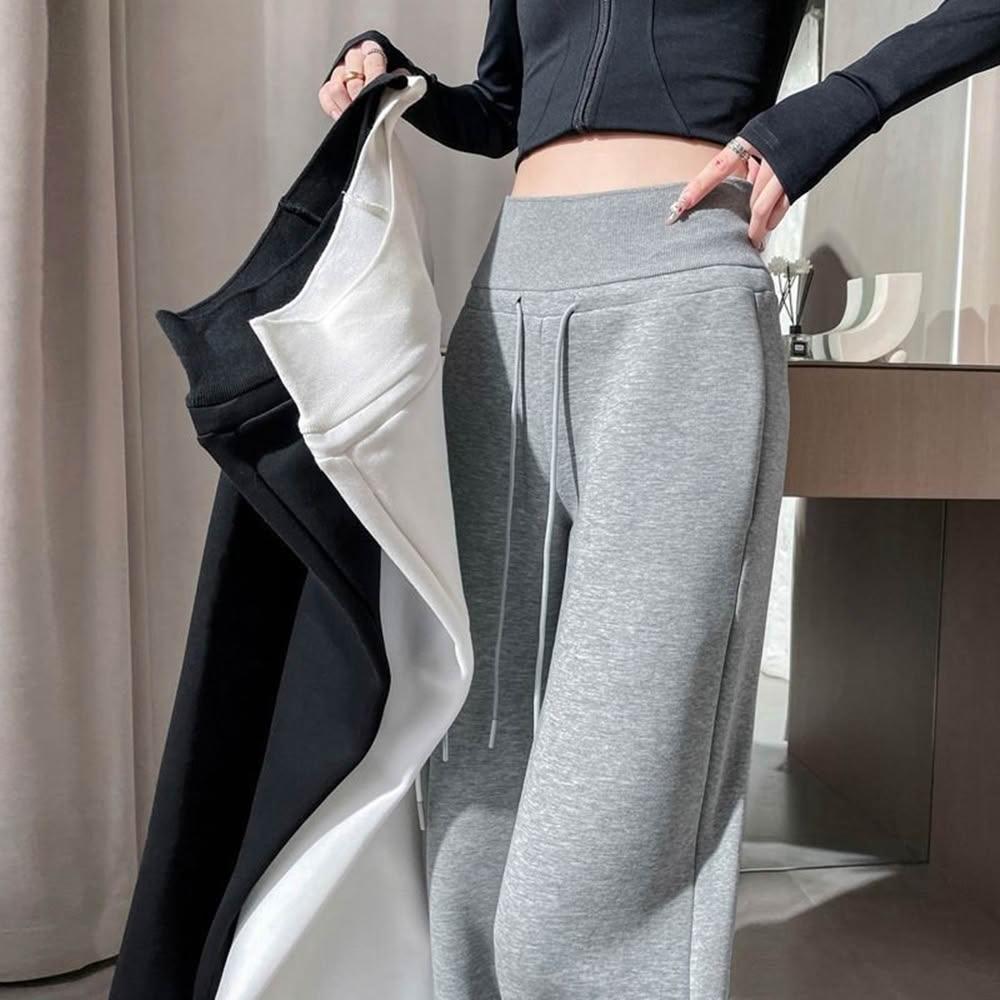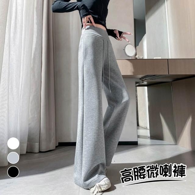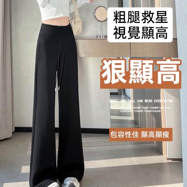 D.studio韓版高腰垂感運動寬褲 運動褲 寬褲 褲子 長褲 休閒褲 高腰褲 直筒褲 黑褲 夏天女裝 喇叭褲【P410】