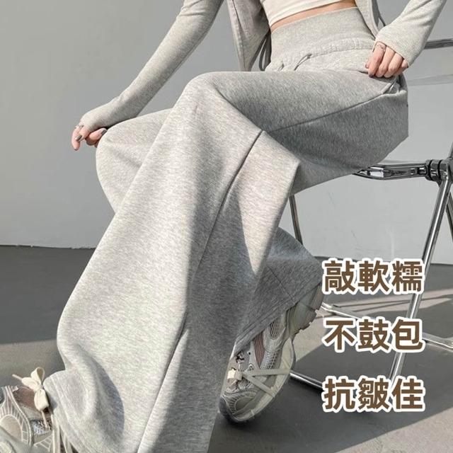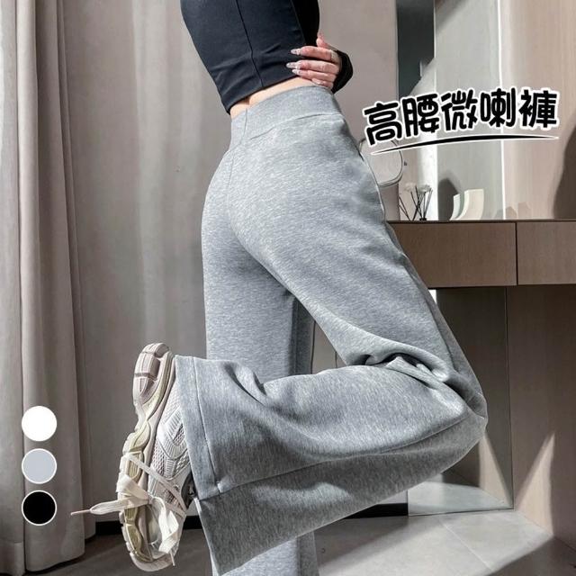 D.studio韓版高腰垂感運動寬褲 運動褲 寬褲 褲子 長褲 休閒褲 高腰褲 直筒褲 黑褲 夏天女裝 喇叭褲【P410】