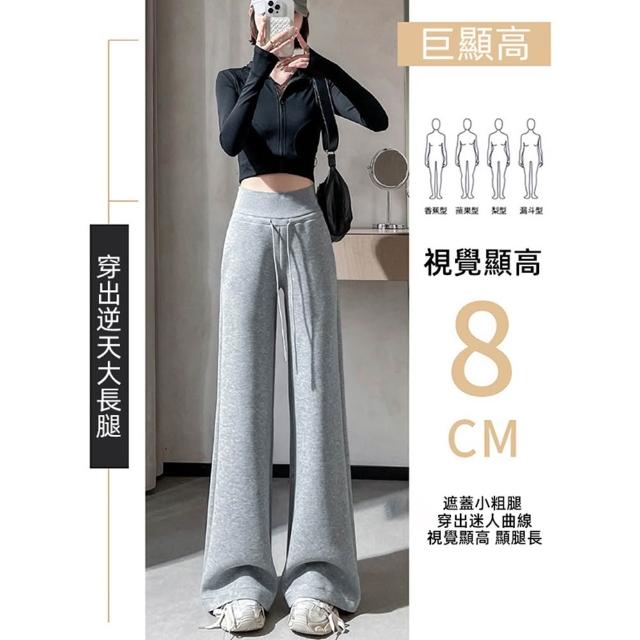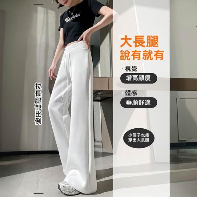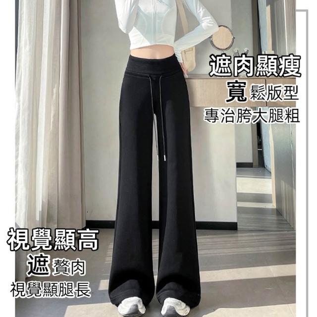 D.studio韓版高腰垂感運動寬褲 運動褲 寬褲 褲子 長褲 休閒褲 高腰褲 直筒褲 黑褲 夏天女裝 喇叭褲【P410】