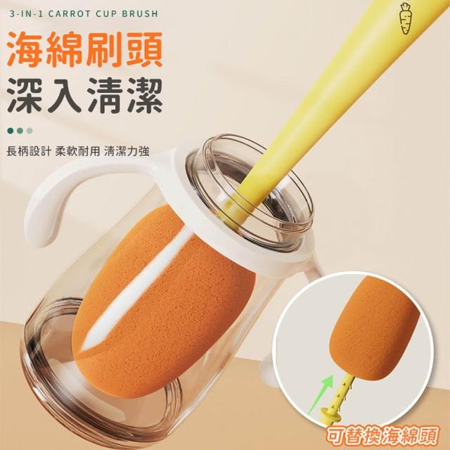 同闆購物三合一胡蘿蔔杯刷 長柄杯刷 替換刷頭 海綿杯刷 長柄杯刷 長柄刷 清潔刷 洗杯刷 杯刷 洗潔刷 造型刷 刷子