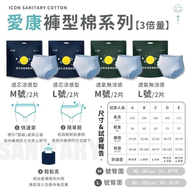 同闆購物愛康衛生棉 晚安褲系列 透芯涼感褲型棉 無涼感褲型棉 M號80-95cm L號85-105cm
