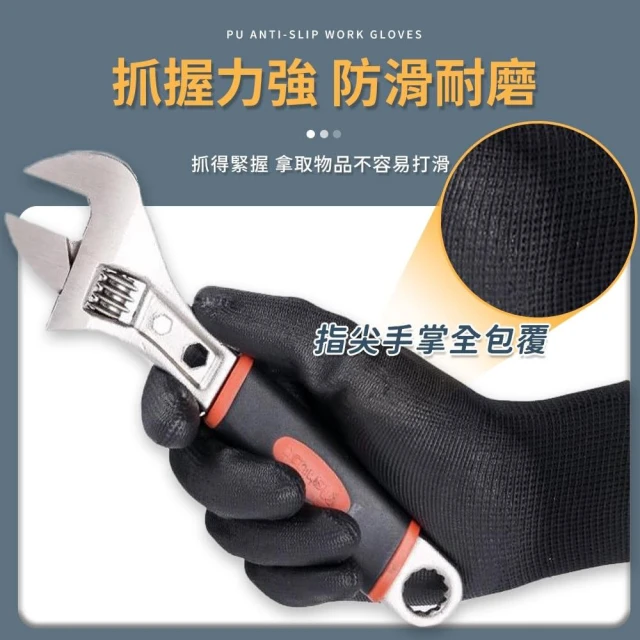 同闆購物工作手套 PU塗層手套 防滑手套 手套 [12雙入] 止滑手套 黑膠止滑透氣手套 塗掌手套 黑色手套 工地手套