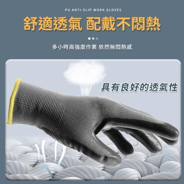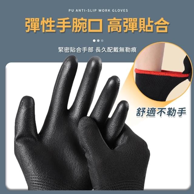 同闆購物工作手套 PU塗層手套 防滑手套 手套 [12雙入] 止滑手套 黑膠止滑透氣手套 塗掌手套 黑色手套 工地手套