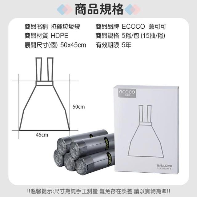 ecoco抽繩垃圾袋 10L-雙邊拉繩款提繩垃圾袋 拉繩垃圾袋 束口垃圾袋 手提垃圾袋 自動收口 垃圾袋 廚房