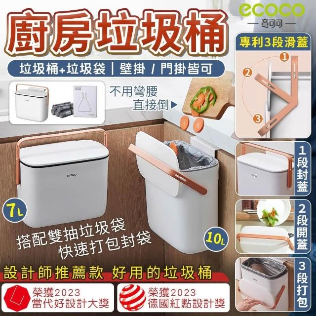 ecoco壁掛垃圾桶|垃圾桶 壁掛式 廚房垃圾桶 廚餘桶 浴室垃圾桶 收納桶 掀蓋垃圾桶 收納 置物 雙抽垃圾袋