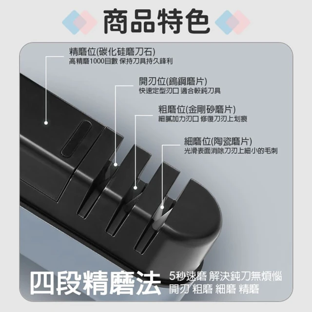 ecoco高精度磨刀器 附帶磨刀石 磨刀器 磨刀石 多刀適用 四段精磨