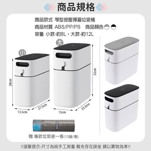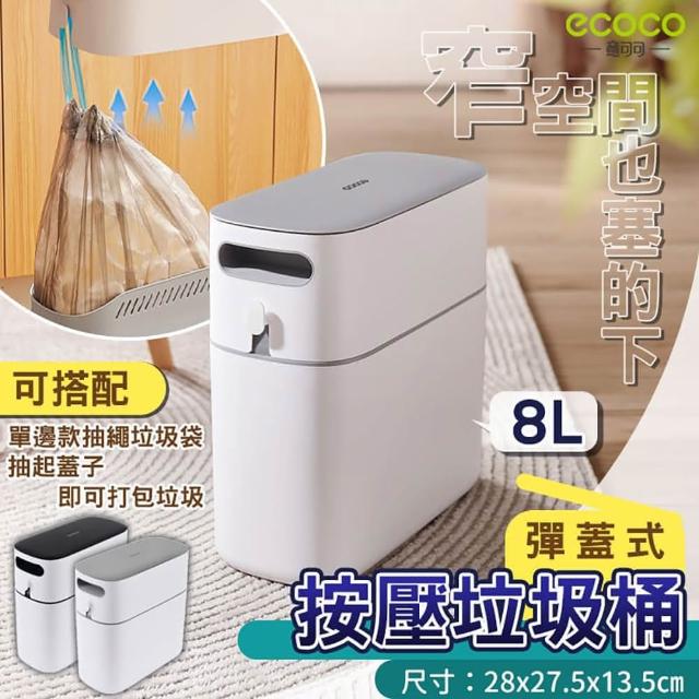 ecoco8L 垃圾桶 回收桶 按壓垃圾桶 彈蓋垃圾桶 按壓式 彈蓋 窄型垃圾桶 垃圾袋 縫隙垃圾桶