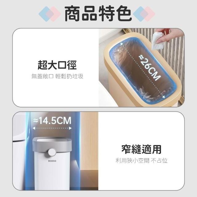 ecoco寬口垃圾桶-窄縫款|垃圾桶 廁所垃圾桶 浴室垃圾桶 垃圾袋 縫隙垃圾桶 夾縫垃圾桶 回收桶 窄縫垃圾桶 垃圾筒 窄型