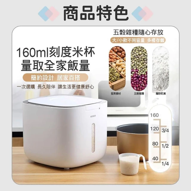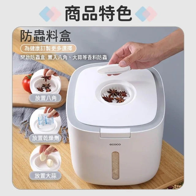 ecoco米桶|儲米桶 米筒 飼料桶 防潮 防蟲 超大容量 廚房 收納盒 米 乾糧 5L 10L